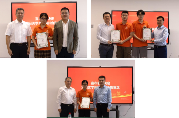 专职辅导员王长磊老师介绍学院本次奖学金评审的具体情况,充分展示学院获奖学子的优秀表现。与会嘉宾为获奖学生代表颁奖,合影留念。