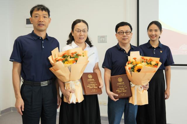 会上,卓义周书记与顾颖能副书记为龙云亮教授、方艳梅副教授颁授“中山大学卓越服务奖”,对两位教师长期以来在人才培养、教学科研中的辛勤工作、无私奉献表示敬佩和感激。