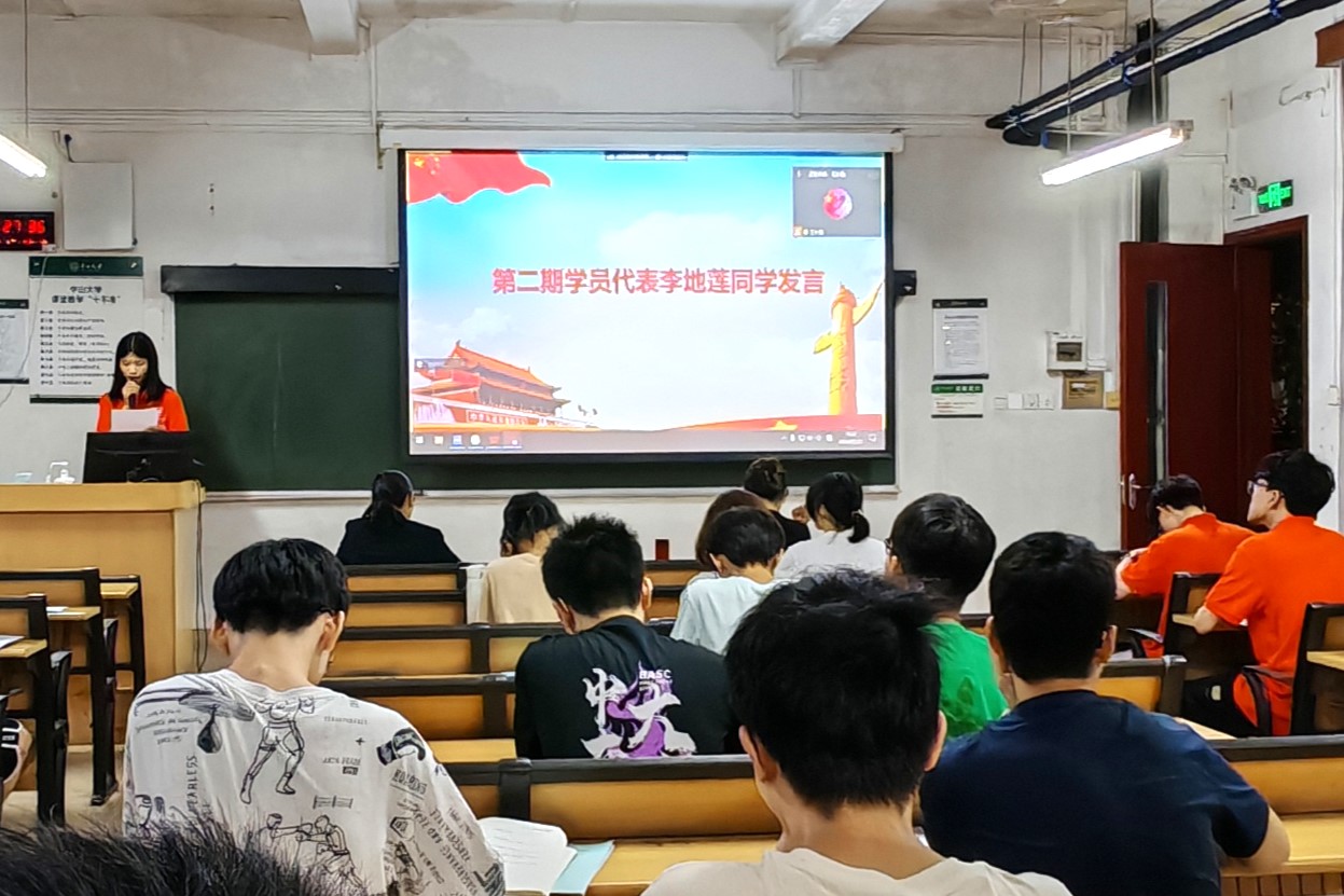 学院22级本科生王乙茜作为第一期青马学堂优秀学员代表发言。她表示,在青马学堂的学习经历让同学们对党的科学理论有了更加深刻的认识,切实体会了“纸上得来终觉浅,绝知此事要躬行”的道理,将与第二期学员共勉,发扬认真学习,奋勇争先的优良学风。