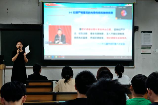 开班仪式后,文净老师为同学们讲授了主题为“党纪学习”的开班第一课。文净老师围绕修订意义、主旨要义、主要内容等方面对新修订的《中国共产党纪律处分条例》进行了解读,针对性分析了条例中与同学们息息相关的重要内容,运用相关案例开展警示教育。