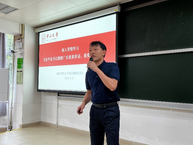 学院直属党支部书记卓义周为全体新生讲授“思政第一课”。卓义周书记指出习近平总书记四赴广东考察调研,传递出对广东为社会主义现代化建设作出更大贡献的深切期待,希望同学们以民族复兴为己任,不懈努力,为党和国家的发展贡献力量。并对新生提出三点希望:一是思想上保持先进,二是学业上保持积极,三是加强锻炼,锻造强健体魄,迎接未来挑战。