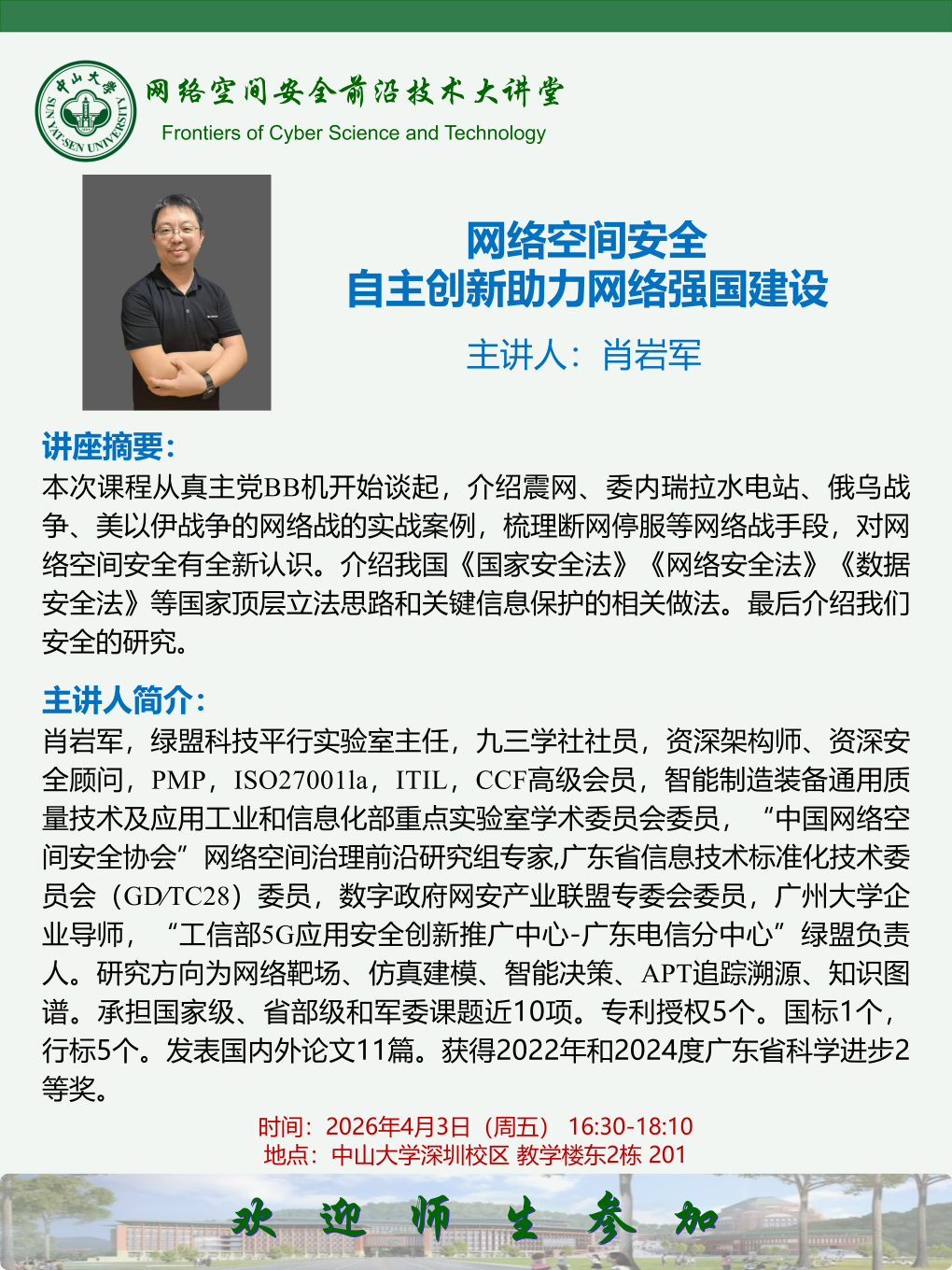【网络空间安全前沿技术大讲堂】网络空间安全自主创新助力网络强国建设
